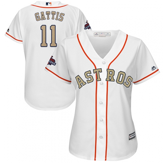 Home>MLB>Houston Astros>Evan Gattis>Women's Majestic Houston Astros #11 Evan Gattis Authentic White 2018 Gold Program Cool Base MLB Jersey