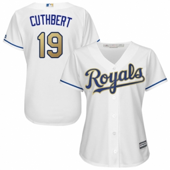 >Women's Majestic Kansas City Royals #19 Cheslor Cuthbert Authentic White Home Cool Base MLB Jersey