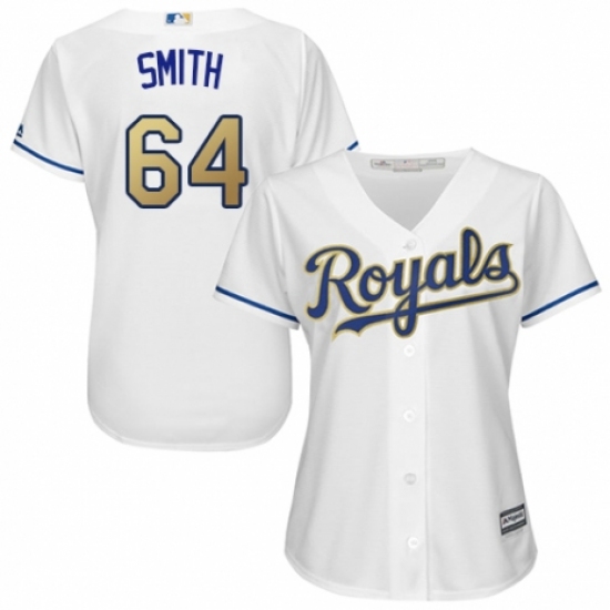 >Women's Majestic Kansas City Royals #64 Burch Smith Replica White Home Cool Base MLB Jersey
