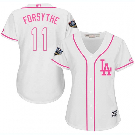 Women's Majestic Los Angeles Dodgers #11 Logan Forsythe Authentic Pink Fashion Cool Base 2018 World Series MLB Jersey