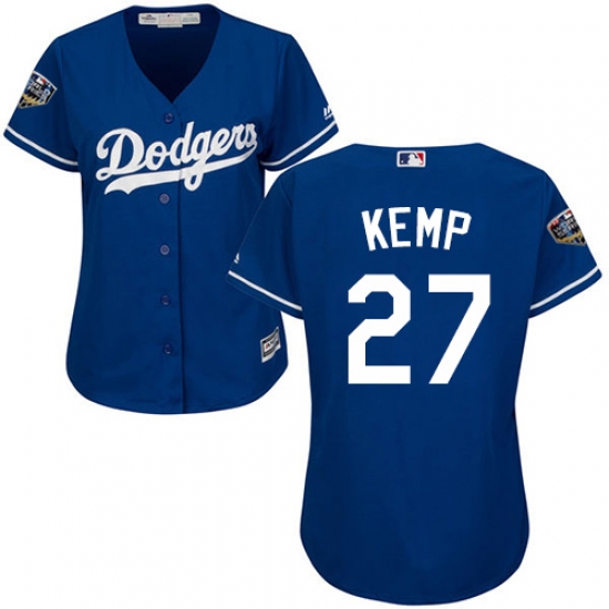 Women's Majestic Los Angeles Dodgers #27 Matt Kemp Authentic Royal Blue Alternate Cool Base 2018 World Series MLB Jersey