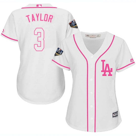 Women's Majestic Los Angeles Dodgers #3 Chris Taylor Authentic White Fashion Cool Base 2018 World Series MLB Jersey