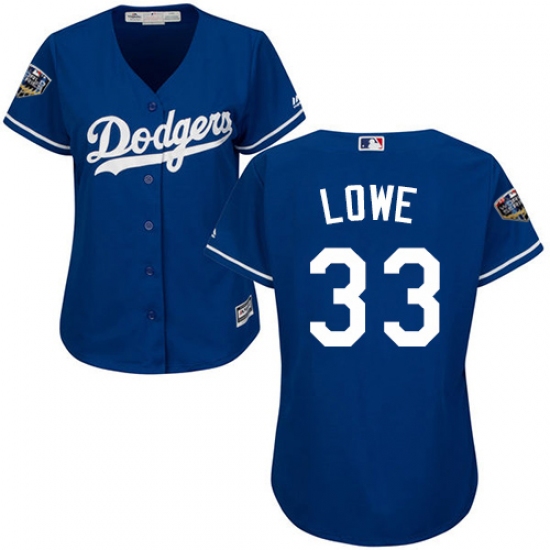 Women's Majestic Los Angeles Dodgers #33 Mark Lowe Authentic Royal Blue Alternate Cool Base 2018 World Series MLB Jersey