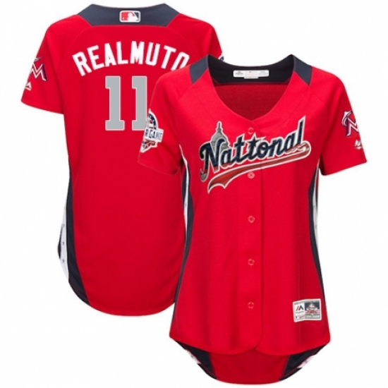 Women's Majestic Miami Marlins #11 J. T. Realmuto Game Red National League 2018 MLB All-Star MLB Jersey