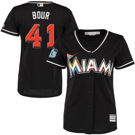 Women's Majestic Miami Marlins #41 Justin Bour Replica Black Alternate 2 Cool Base MLB Jersey