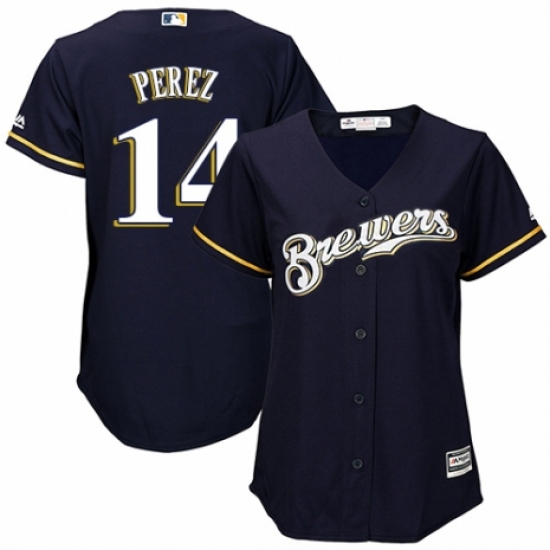 Women's Majestic Milwaukee Brewers #14 Hernan Perez Authentic Navy Blue Alternate Cool Base MLB Jersey