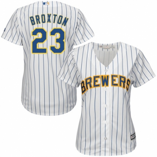 >Women's Majestic Milwaukee Brewers #23 Keon Broxton Replica White Home Cool Base MLB Jersey