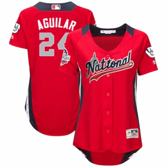 Women's Majestic Milwaukee Brewers #24 Jesus Aguilar Game Red National League 2018 MLB All-Star MLB Jersey