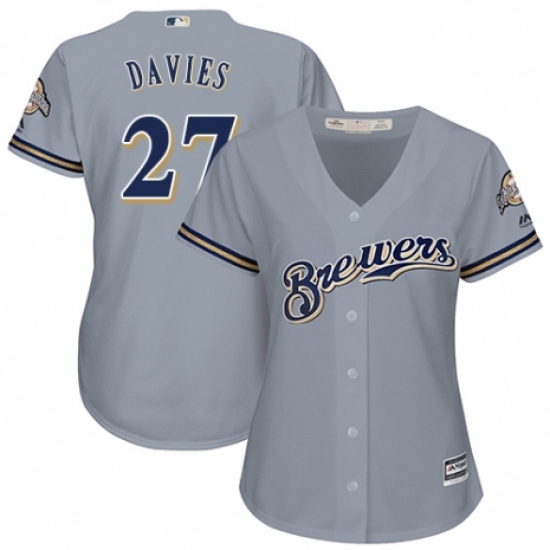 Women's Majestic Milwaukee Brewers #27 Zach Davies Replica Grey Road Cool Base MLB Jersey