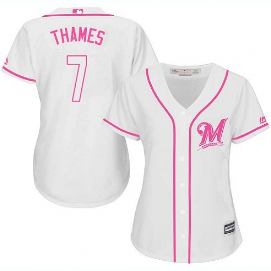 Home>MLB>Milwaukee Brewers>Eric Thames>Women's Majestic Milwaukee Brewers #7 Eric Thames Authentic White Fashion Cool Base MLB Jersey