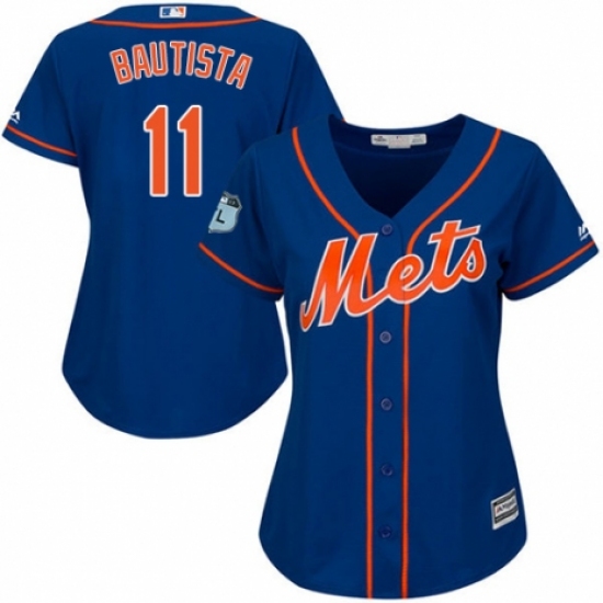 >Women's Majestic New York Mets #11 Jose Bautista Authentic Royal Blue Alternate Home Cool Base MLB Jersey