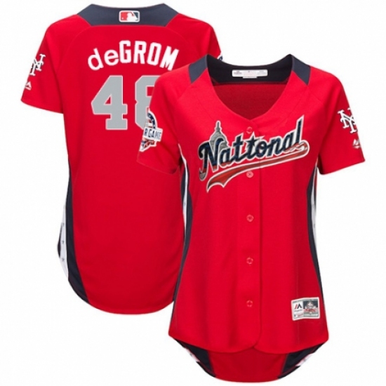 Women's Majestic New York Mets #48 Jacob deGrom Game Red National League 2018 MLB All-Star MLB Jersey