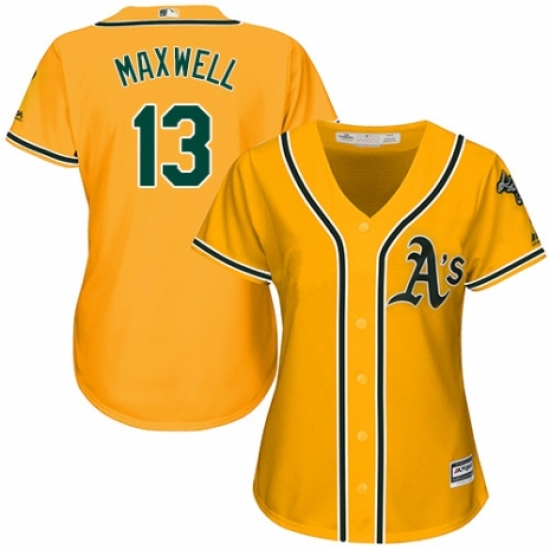 Women's Majestic Oakland Athletics #13 Bruce Maxwell Replica Gold Alternate 2 Cool Base MLB Jersey