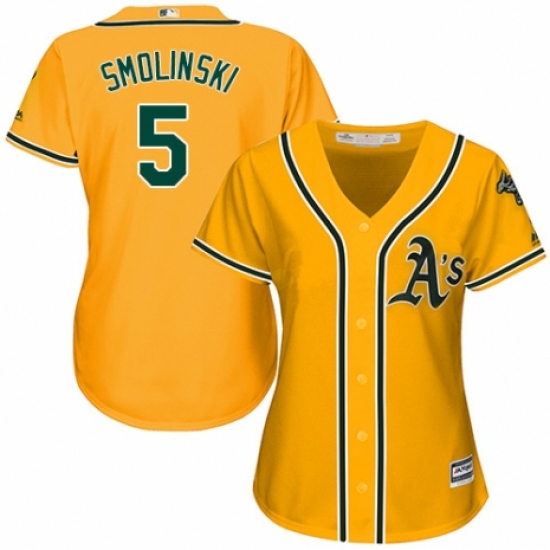 Women's Majestic Oakland Athletics #5 Jake Smolinski Authentic Gold Alternate 2 Cool Base MLB Jersey