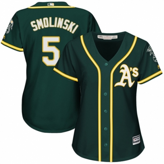 Women's Majestic Oakland Athletics #5 Jake Smolinski Replica Green Alternate 1 Cool Base MLB Jersey