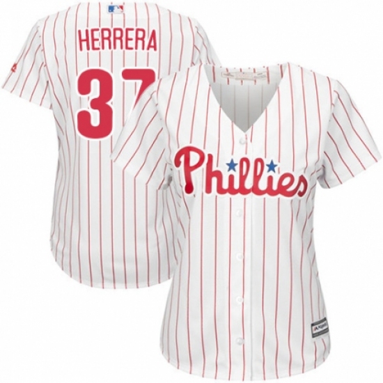 >Women's Majestic Philadelphia Phillies #37 Odubel Herrera Authentic White/Red Strip Home Cool Base MLB Jersey