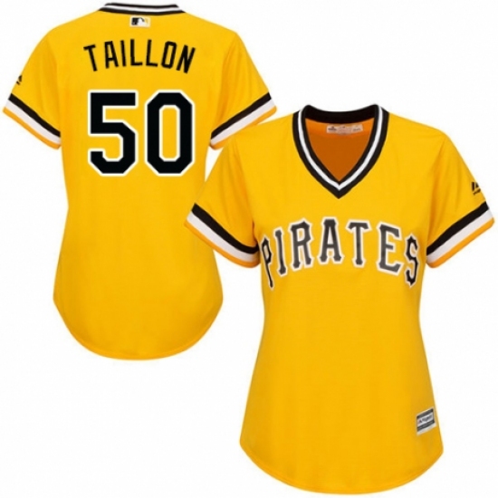 >Women's Majestic Pittsburgh Pirates #50 Jameson Taillon Replica Gold Alternate Cool Base MLB Jersey