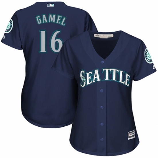 Women's Majestic Seattle Mariners #16 Ben Gamel Authentic Navy Blue Alternate 2 Cool Base MLB Jersey