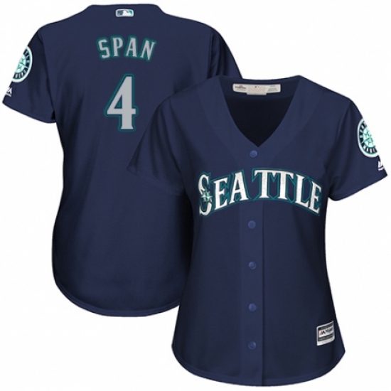 Women's Majestic Seattle Mariners #4 Denard Span Replica Navy Blue Alternate 2 Cool Base MLB Jersey