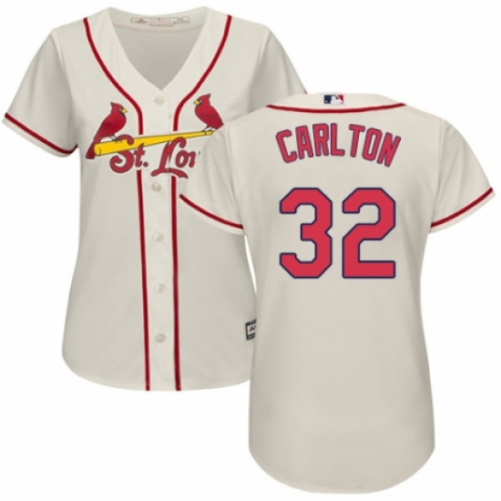 >Women's Majestic St. Louis Cardinals #32 Steve Carlton Authentic Cream Alternate Cool Base MLB Jersey
