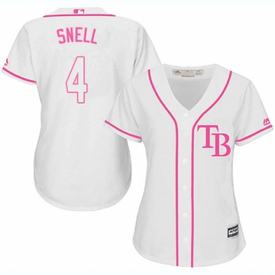 >Women's Majestic Tampa Bay Rays #4 Blake Snell Replica White Fashion Cool Base MLB Jersey