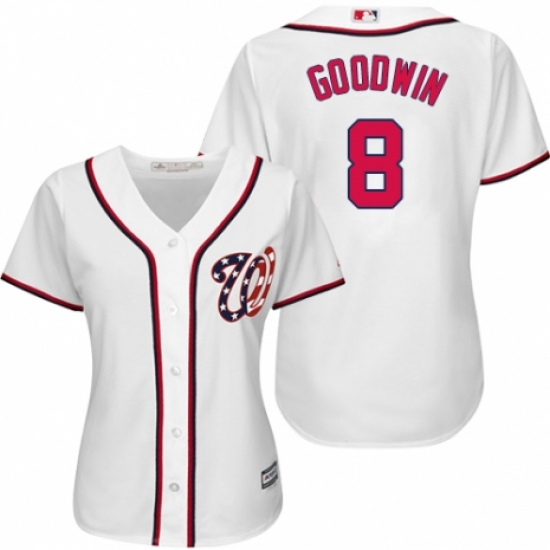 Women's Majestic Washington Nationals #8 Brian Goodwin Authentic White Home Cool Base MLB Jersey