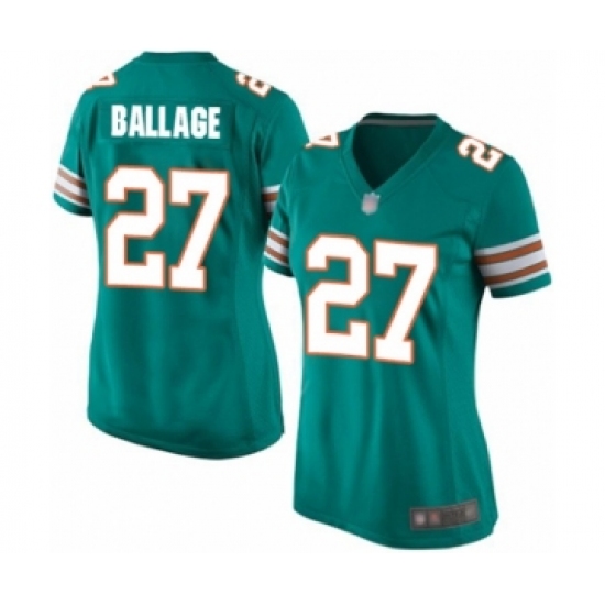Women's Miami Dolphins #27 Kalen Ballage Game Aqua Green Alternate Football Jersey