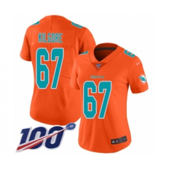 >Women's Miami Dolphins #67 Daniel Kilgore Limited Orange Inverted Legend 100th Season Football Jersey
