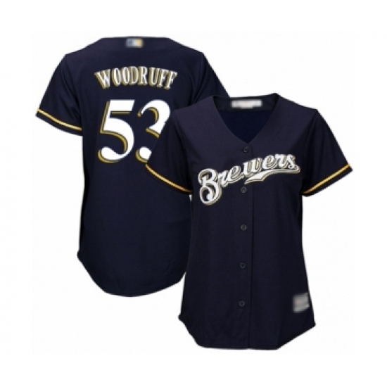Women's Milwaukee Brewers #53 Brandon Woodruff Authentic Navy Blue Alternate Cool Base Baseball Jersey
