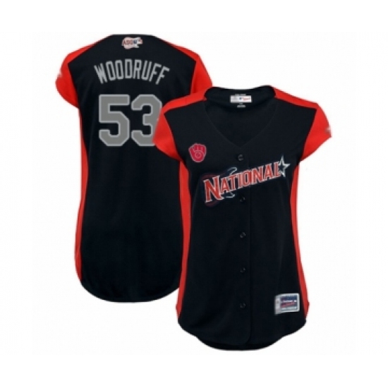 Women's Milwaukee Brewers #53 Brandon Woodruff Authentic Navy Blue National League 2019 Baseball All-Star Jersey