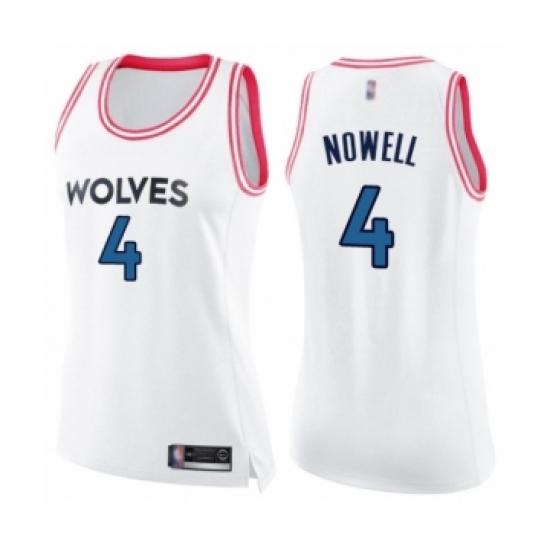 >Women's Minnesota Timberwolves #4 Jaylen Nowell Swingman White Pink Fashion Basketball Jersey