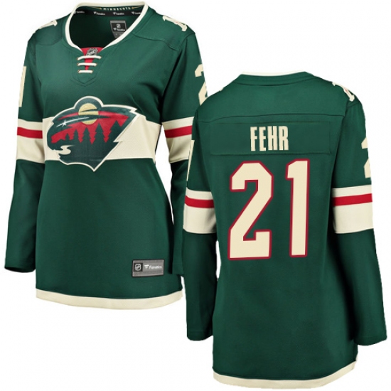 Women's Minnesota Wild #21 Eric Fehr Authentic Green Home Fanatics Branded Breakaway NHL Jersey