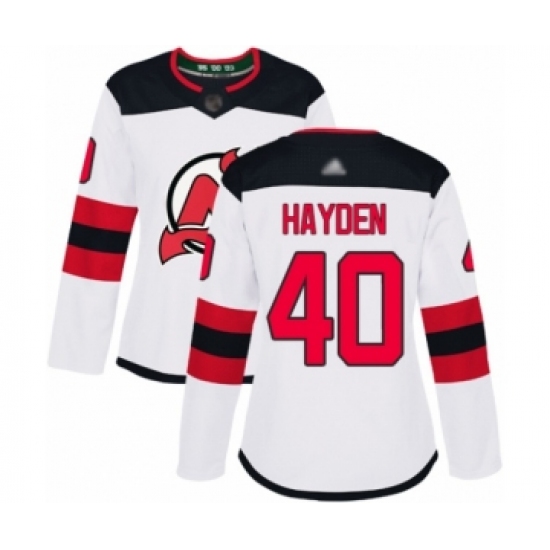 Women's New Jersey Devils #40 John Hayden Authentic White Away Hockey Jersey