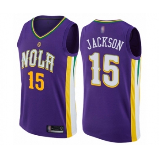 >Women's New Orleans Pelicans #15 Frank Jackson Swingman Purple Basketball Jersey - City Edition