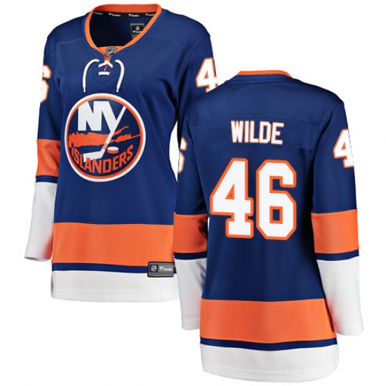 >Women's New York Islanders #46 Bode Wilde Fanatics Branded Royal Blue Home Breakaway NHL Jersey