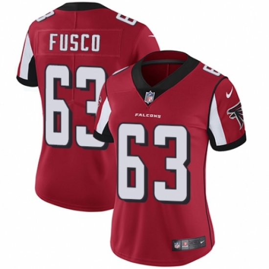 Women's Nike Atlanta Falcons #63 Brandon Fusco Red Team Color Vapor Untouchable Limited Player NFL Jersey