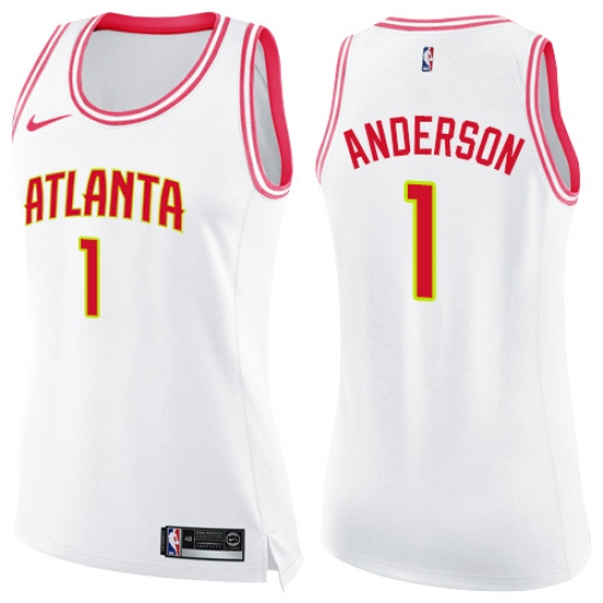 >Women's Nike Atlanta Hawks #1 Justin Anderson Swingman White Pink Fashion NBA Jersey