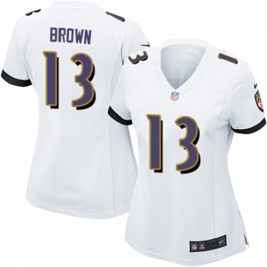 Women's Nike Baltimore Ravens #13 John Brown Game White NFL Jersey