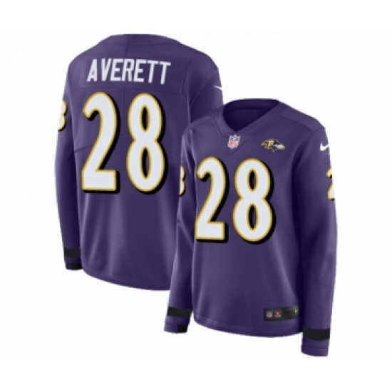 Women's Nike Baltimore Ravens #28 Anthony Averett Limited Purple Therma Long Sleeve NFL Jersey