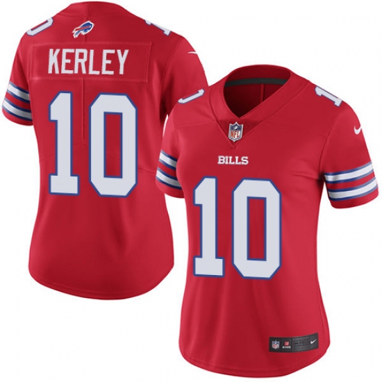 >Women's Nike Buffalo Bills #10 Jeremy Kerley Limited Red Rush Vapor Untouchable NFL Jersey