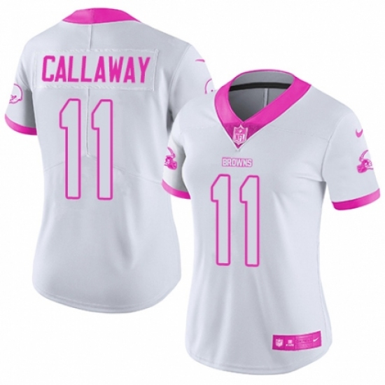 Women's Nike Cleveland Browns #11 Antonio Callaway Limited White/Pink Rush Fashion NFL Jersey