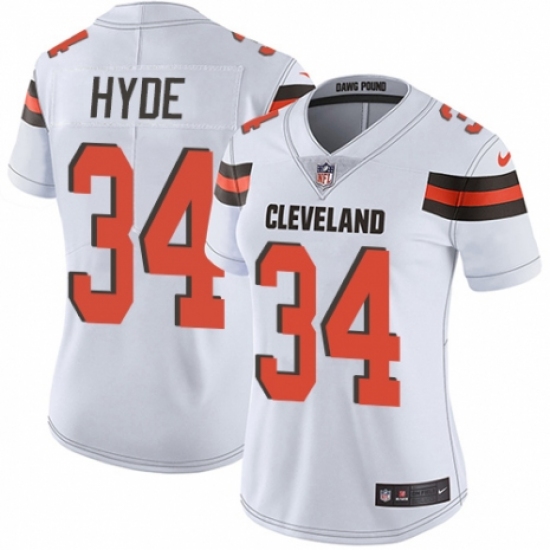 >Women's Nike Cleveland Browns #34 Carlos Hyde White Vapor Untouchable Limited Player NFL Jersey