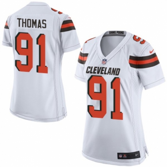 Women's Nike Cleveland Browns #91 Chad Thomas Game White NFL Jersey