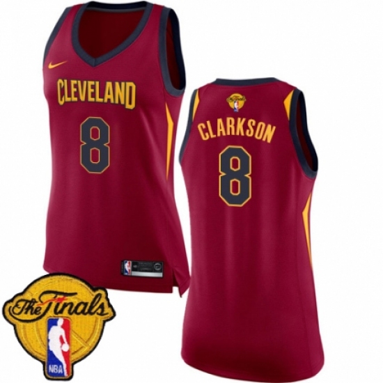Women's Nike Cleveland Cavaliers #8 Jordan Clarkson Authentic Maroon 2018 NBA Finals Bound NBA Jersey - Icon Edition