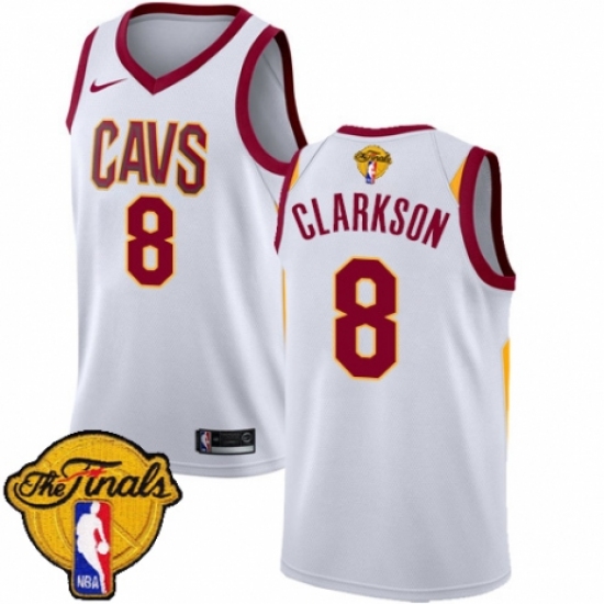 Women's Nike Cleveland Cavaliers #8 Jordan Clarkson Swingman White 2018 NBA Finals Bound NBA Jersey - Association Edition