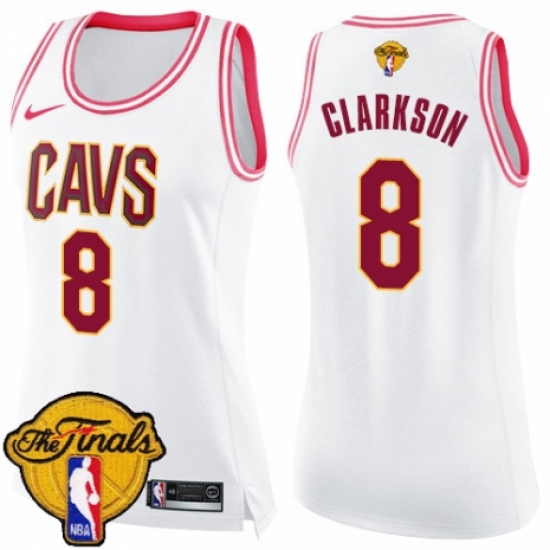 Women's Nike Cleveland Cavaliers #8 Jordan Clarkson Swingman White/Pink Fashion 2018 NBA Finals Bound NBA Jersey