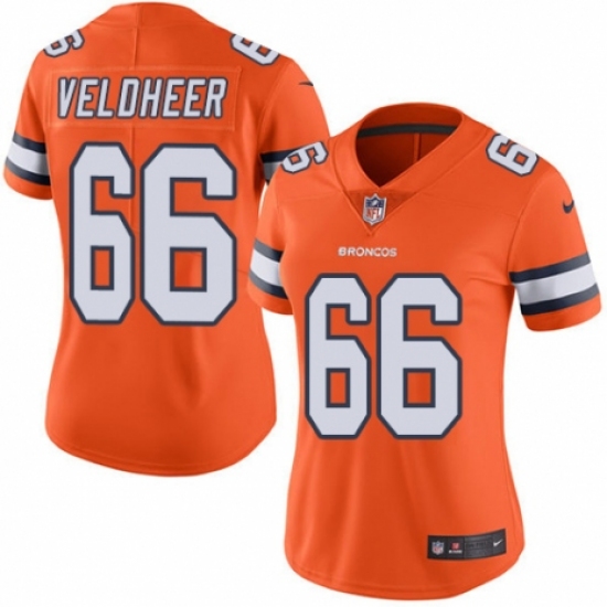 >Women's Nike Denver Broncos #66 Jared Veldheer Limited Orange Rush Vapor Untouchable NFL Jersey