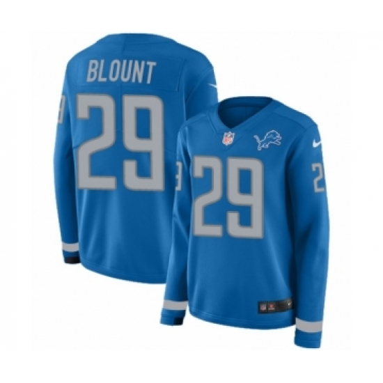 Women's Nike Detroit Lions #29 LeGarrette Blount Limited Blue Therma Long Sleeve NFL Jersey