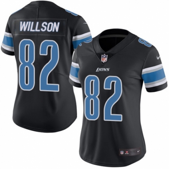>Women's Nike Detroit Lions #82 Luke Willson Limited Black Rush Vapor Untouchable NFL Jersey