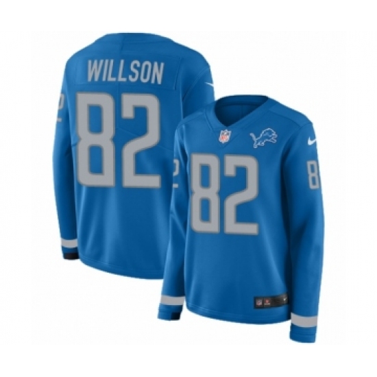Women's Nike Detroit Lions #82 Luke Willson Limited Blue Therma Long Sleeve NFL Jersey